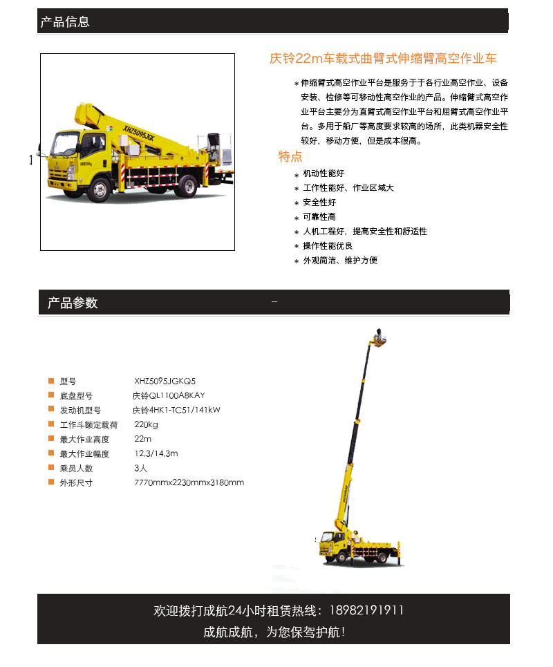 22m車載式曲臂式伸縮臂式高空作業(yè)車
