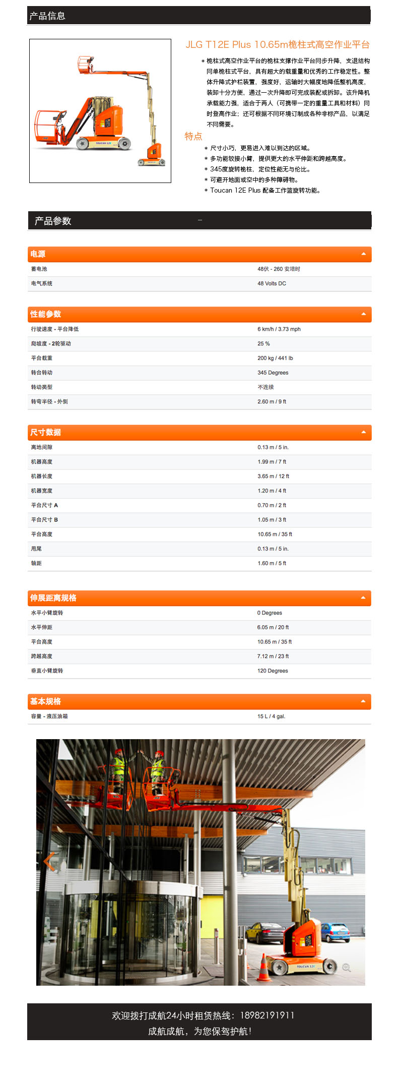 10.65m桅桿式直臂式高空作業(yè)車